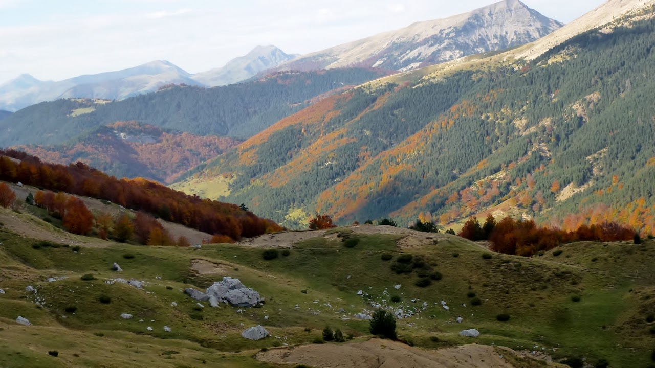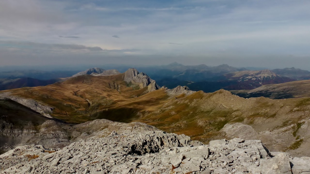 Nada más alcanzar el collado giramos a la drcha, para continuar subiendo para llegar hasta la cumbre del Peña Forca. A medida que vamos cogiendo más altura el colorido otoñal de valles y lomas nos sorprende. Si se continua por la cresta llegaremos a la Antecima de Peña Forca para después continuar hasta la cumbre de Peña Forca 2.388m,