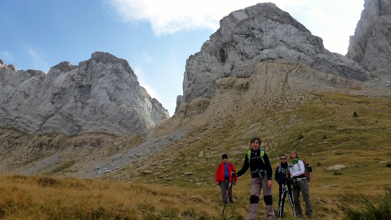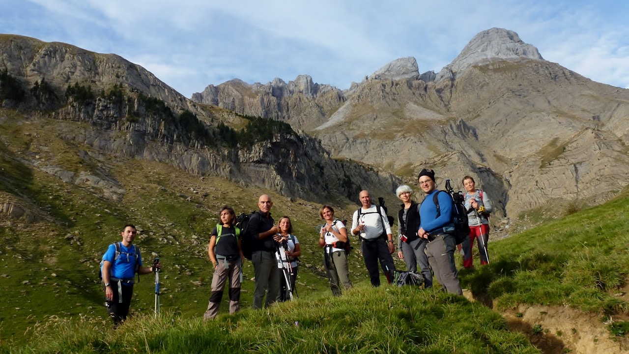 El camino por los altos prados de esta zona se hace cómodo mientras avanzamos hacia las Aguas de Alano entre las que bajaríamos para llegar al valle de Zuriza por un sendero de piedras bien trazado, aunque con un fuerte desnivel. Poco a poco el valle se abre a nuestra vista, abajo los LLanos de Tatxeras, mientras que continuamos bajando sobre nuestras cabezas yerguen hacia el cielo, en total verticalidad, las Agujas de Alano.