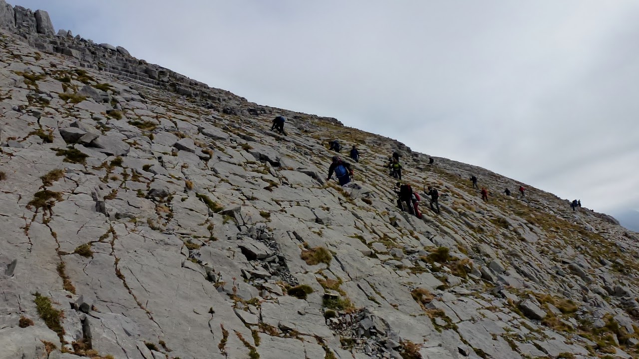 Arriba, ya casi a nuestro alcance, el collado de Lenito, 2.197m, pone fin a la fuerte subida por el Tubo con unas inmejorables vistas.